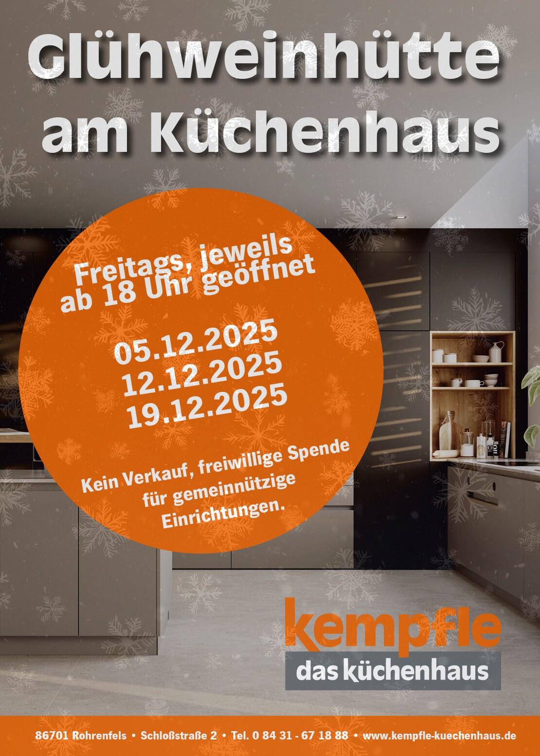 Das Küchenhaus lädt alle ein, gemeinsam auf die Weihnachtszeit anzustoßen und dabei lokale Projekte zu unterstützen. Ein Besuch der Glühweinhütte am Küchenhaus bietet den idealen Rahmen, um die Woche entspannt ausklingen zu lassen und sich in stimmungsvoller Umgebung auf die Festtage einzustimmen.
